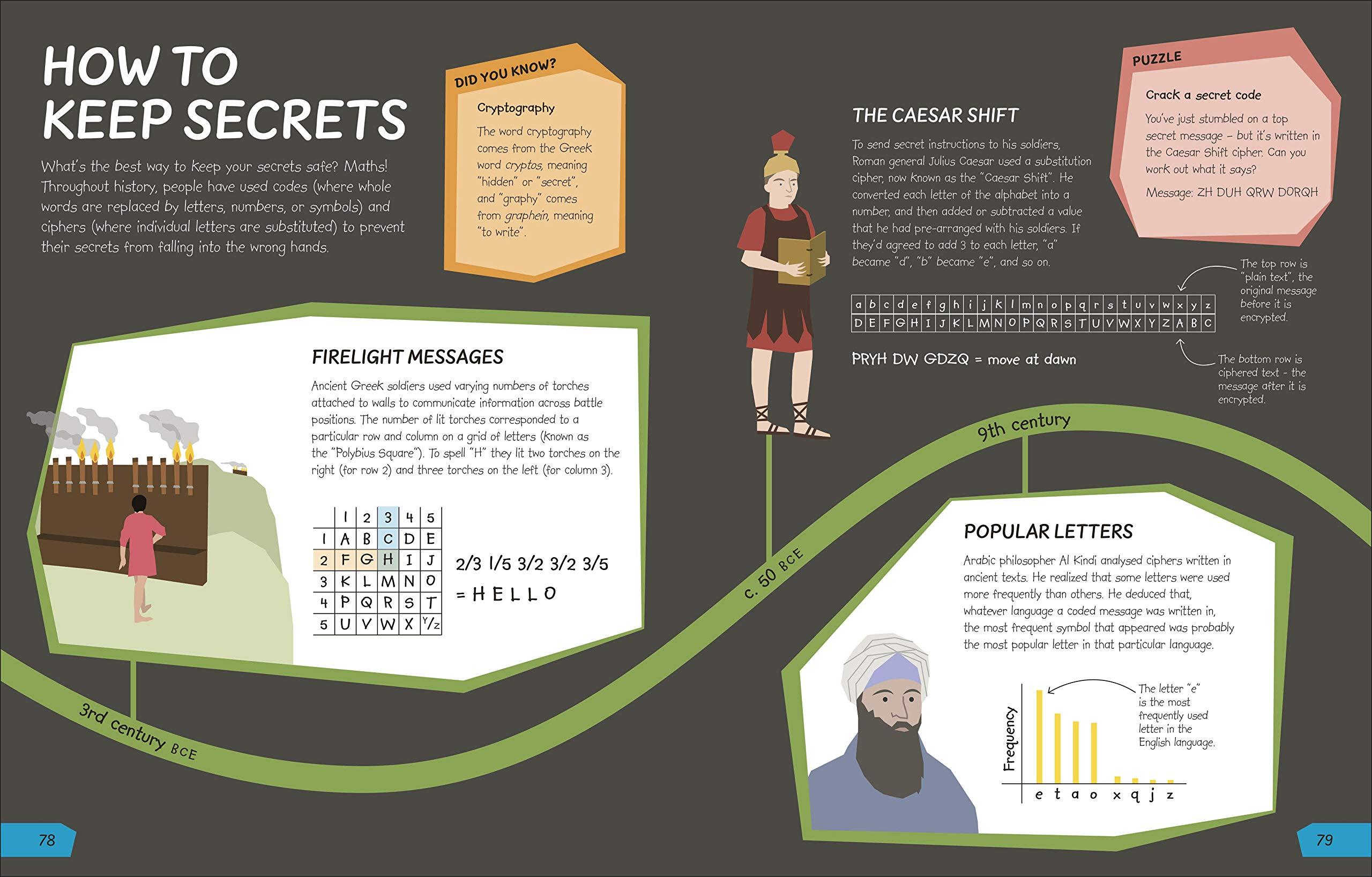 Incredible historical stories explore the often surprising origins of the maths we use today, from number sequences to trigonometry. Crazy facts, magic tricks, and mathematical brainteasers will amuse and entertain even the most reluctant math students. Find out why an hour has 60 rather than 100 minutes and how codes keep our secrets safe. Colourful and uncluttered illustrations make mathematical explanations easy to grasp in seconds and make this user-friendly book simple to navigate and a joy to browse and read.What's the Point of Maths? is perfect for those who need some inspiration when it comes to numbers. It combines stories from history with simple visual explanations to bring maths to life. From measuring a pyramid to predicting comets, from counting like the Babylonians to becoming a trillionaire, it shows children why core maths ideas were discovered and invented and how to apply them today - in the classroom and the real world! Accompanying the fascinating stories are puzzles, games, and amazing facts, as well as a lively challenge to help bring each of the topics to life. Stylish, colourful illustrations make the maths fun and unintimidating, while simple diagrams and steps make explanations easy to grasp in seconds. Throughout the book, worked examples show readers how to solve simple maths challenges, encouraging children to improve their maths skills with hands-on practice .