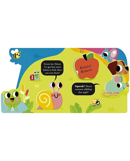 This bright and chunky board book has been specially designed for little hands, with lift-the-flaps to explore and shaped tabs to make page-turning easy. Little ones will love counting the baby snails as they discover where each one is hiding in the garden – perfect for teaching first numbers and developing hand-eye coordination!