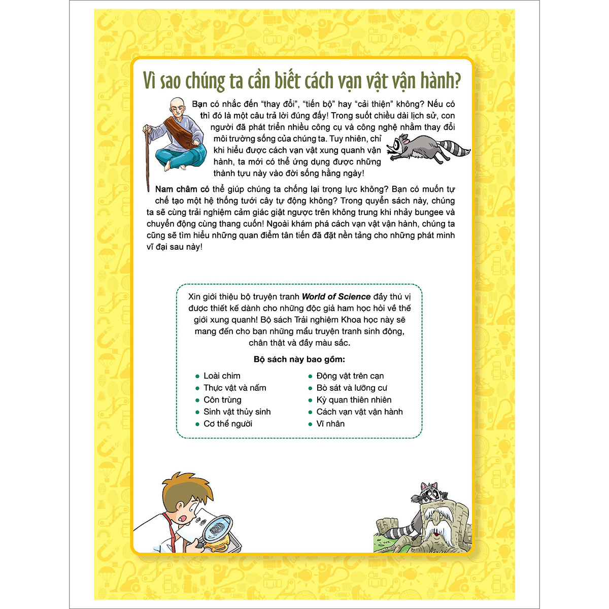 “World of Science” là bộ truyện tranh được biên soạn bởi WS Education, đơn vị xuất bản hàng đầu cho trẻ em tại Singapore và là công ty thắng giải “Best Education Title” tại “Singapore Book Awards” (“Tác phẩm Giáo dục Xuất sắc nhất" thuộc "Giải thưởng sách quốc gia Singapore") trong 3 năm liên tiếp. Bộ truyện gồm 10 tập, dành cho trẻ từ 6 tuổi trở lên, mỗi tập bao hàm một chủ đề thú vị: Loài chim; Thực vật và nấm; Côn trùng; Sinh vật thuỷ sinh; Cơ thể người; Động vật trên cạn; Bò sát và lưỡng cư; Kỳ quan thiên nhiên; Cách vạn vật vận hành.