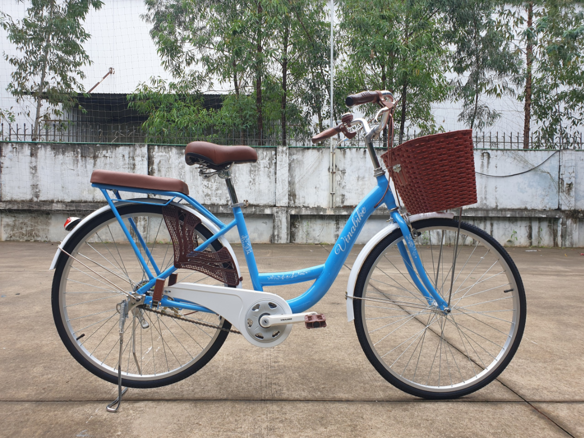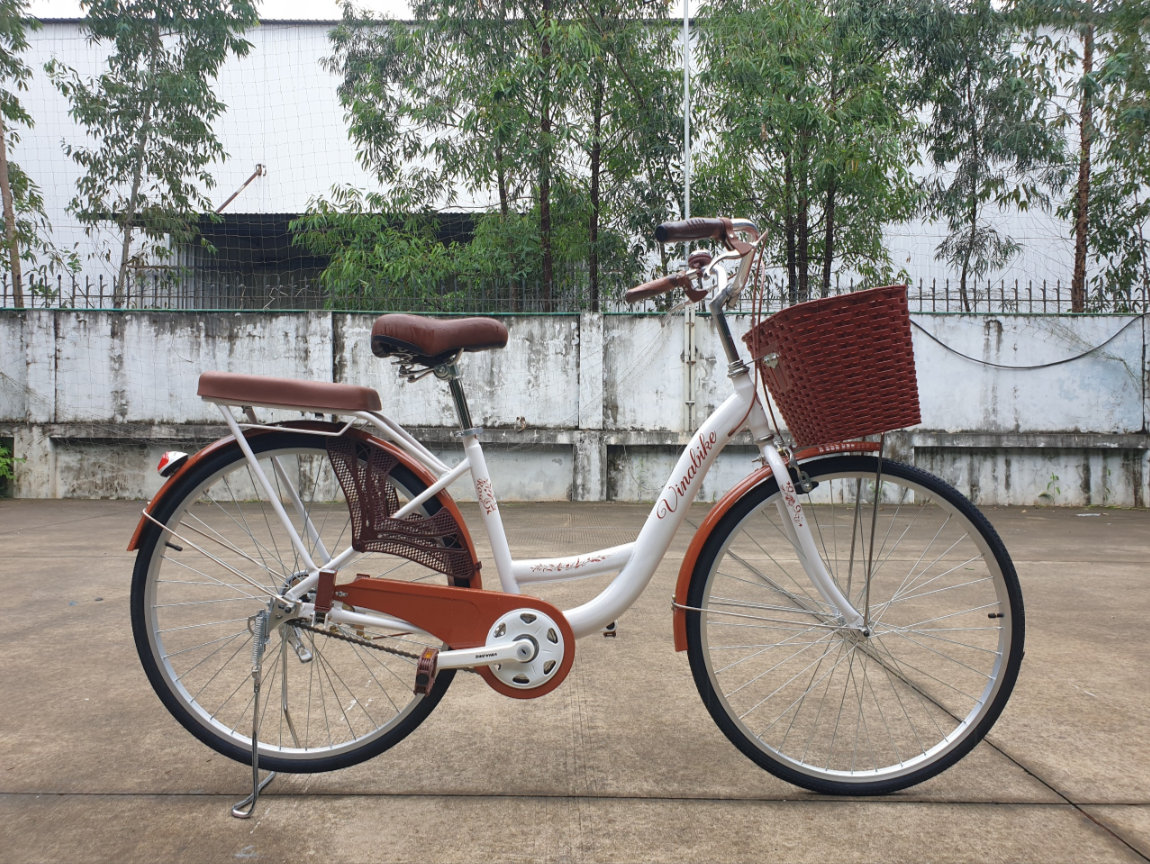 THÔNG TIN CHI TIẾT Khung : thép Bánh xe : kích thước 24 inch Vành : thép Nan hoa : 36 Giỏ xe thiết kế cổ điển : chất liệu nhựa PVC, kích thước 27