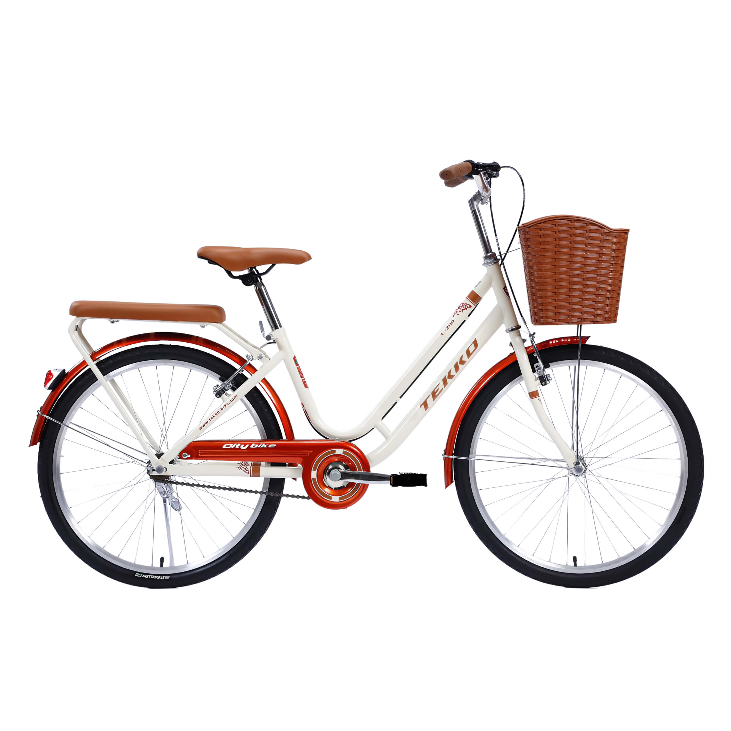 THÔNG TIN CHI TIẾT Khung : thép Bánh xe : kích thước 24 inch Vành : thép Nan hoa : 36 Giỏ xe thiết kế cổ điển : chất liệu nhựa PVC, kích thước 27 x 25 x 35 cm Bộ truyền động : đĩa 33, Líp 16 Khung xe đạp được làm từ hợp kim thép cứng cáp, mang lại khả năng chịu va đập và tải trọng tốt. Lớp sơn tĩnh điện phủ ngoài khung sườn chống ăn mòn, bảo vệ tốt khung sườn .