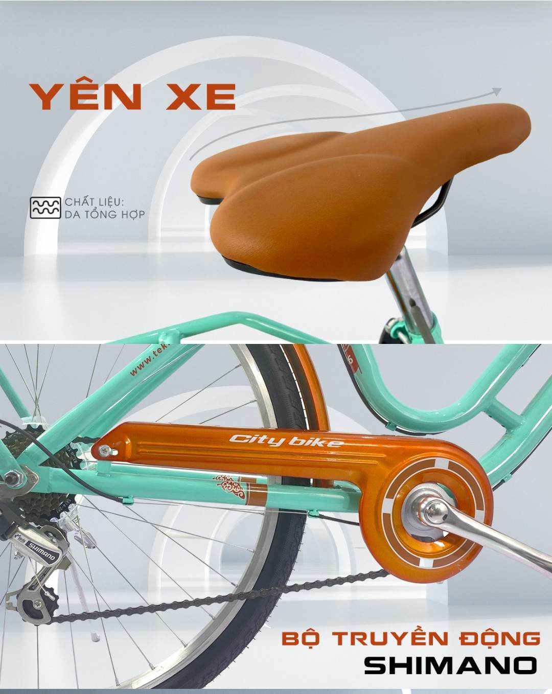 Xe đạp City cao cấp MIAMOR, giá rẻ. - Tay lái ghi đông:được làm từ hợp kim độ choãi rộng giúp người lái thoải mái khi điều khiển xe. - Khung hợp kim Nhôm nhẹ,