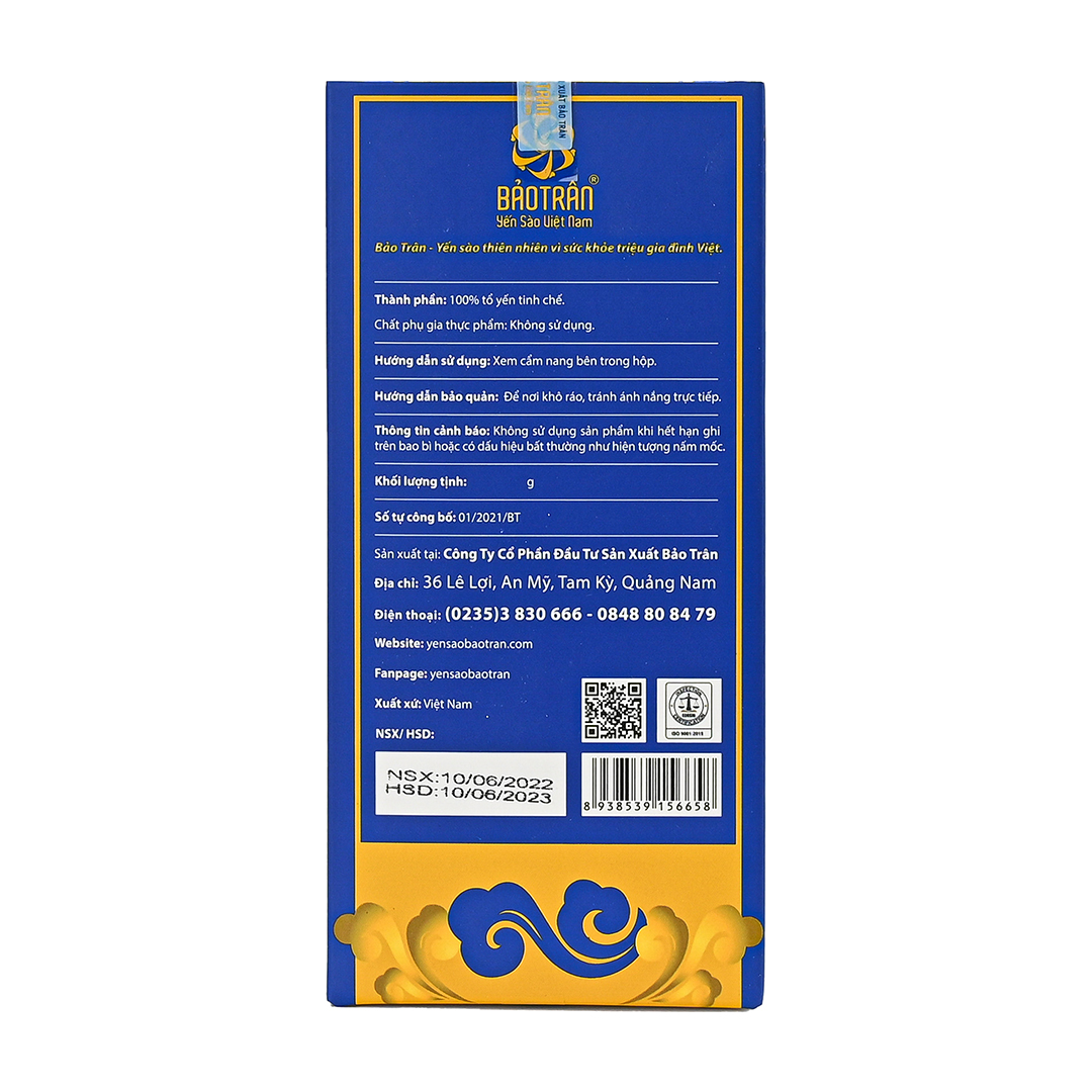 - Yến sào: Hỗ trợ tăng sức đề kháng cho cơ thể, chống lão hóa, ổn định thần kinh, trí nhớ, kích thích tiêu hóa, phục hồi sức khỏe nhanh chóng trong thời gian dưỡng bệnh. Đối tượng sử dụng: thích hợp cho mọi đối tượng đăc biệt trẻ từ 3 tuổi trở lên Sản xuất: Việt Nam Thành phần: Nước, , Yến sào (25%), đường phèn (4%) , chất ổn định (E406), hương liệu dùng cho thực phẩm. Cách dùng: - Lắc nhẹ trước khi uống, ngon hơn khi uống lạnh, tránh đun nóng sản phẩm trước khi sử dụng. - Uống trực tiếp từ lọ. --Uống từ 1 - 2 lọ/ngày. Sản phẩm thích hợp cho người lớn tăng sức đề kháng giúp cơ thể khỏe mạnh, phục hồi sức khỏe cho người bệnh, Không sử dụng sản phẩm khi hết hạn, nên sử dụng một lần sau khi mở nắp.
